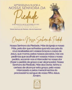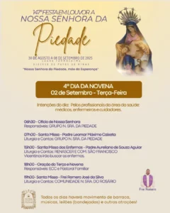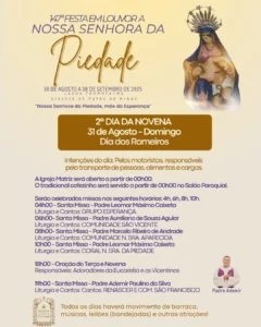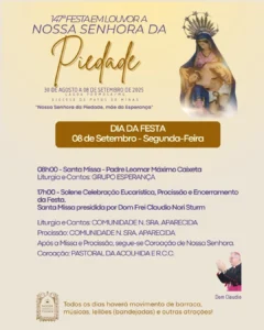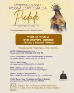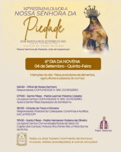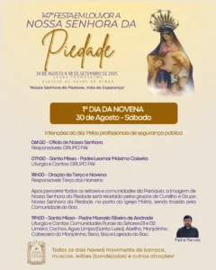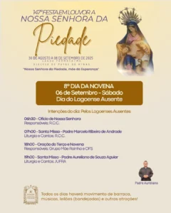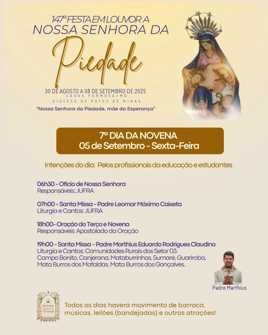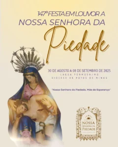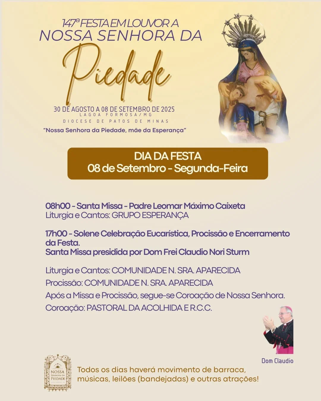 Começa neste sábado (30) mais uma festa religiosa que reúne fé e tradição: a 147ª festa de Nossa Senhora da Piedade, em Lagoa Formosa. A programação segue até o dia 08 de setembro com novena, missas, movimentação de barraquinhas, leilões, show de prêmios e muito mais.