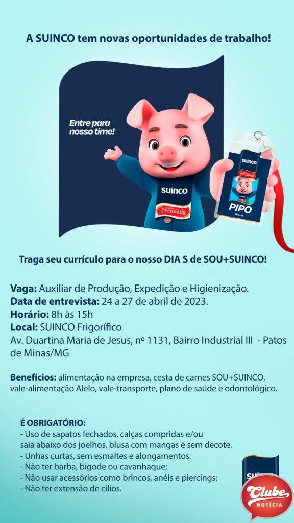 A fim de proporcionar oportunidades, principalmente para o primeiro emprego, a Suinco realizará o dia S, Sou + Suinco.
