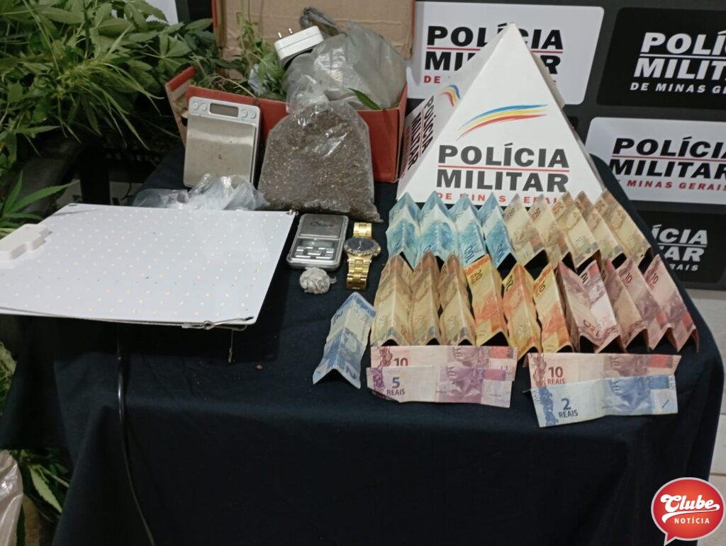 Já na residência do alvo foram encontradas duas buchas de maconha, um vidro com mais droga, duas balanças de precisão, saquinhos para dolagem de drogas e certa quantia em dinheiro. Ainda, na entrada da residência, foram apreendidas duas câmeras de segurança utilizadas para monitorar a polícia.