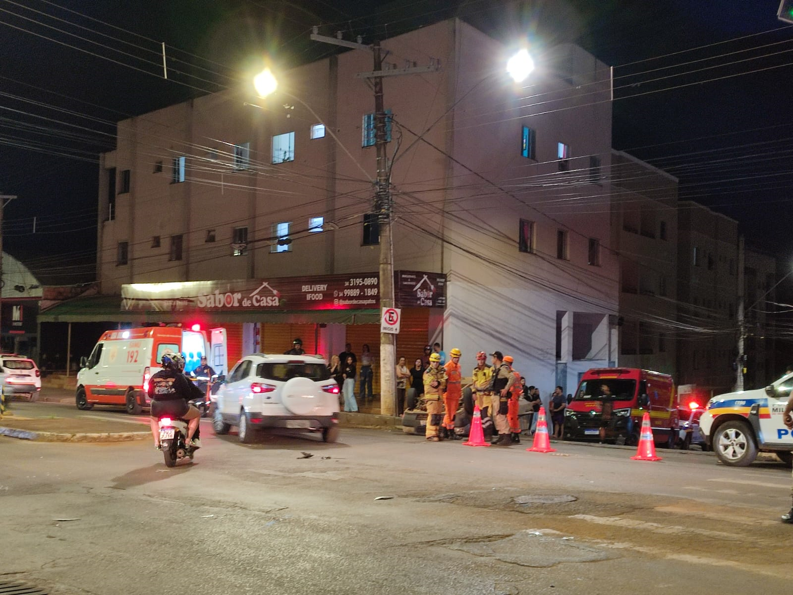 Um grave acidente de trânsito foi registrado na noite desta sexta-feira (27), no cruzamento das ruas Major Gote e Jaime Ramos, no bairro Caiçaras, em Patos de Minas. A ocorrência envolveu um carro e uma motocicleta, resultando em três pessoas feridas e no capotamento de um dos veículos.