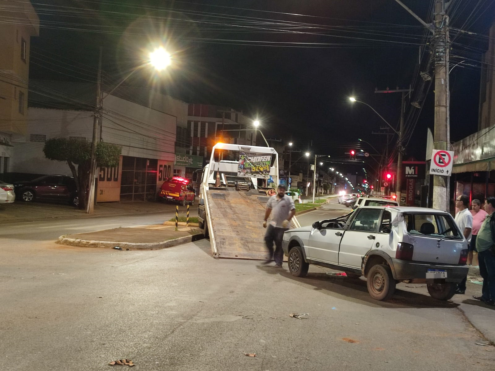 De acordo com informações da Polícia Militar, o veículo Fiat Uno seguia pela Rua Jaime Ramos quando, ao passar pelo cruzamento, foi atingido por uma motocicleta que trafegava pela Rua Major Gote. Com o impacto, o carro rodou na pista e acabou capotando, ficando com as rodas para cima.