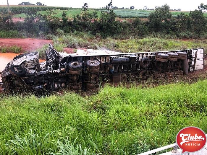 Um outro acidente foi registrado no km 462 BR-365, na chegada de Patrocínio/MG. Uma carreta tombou e interditou totalmente a rodovia. A previsão é que a liberação ocorra até às 12h.
