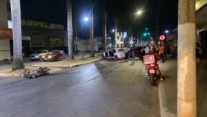 Um grave acidente foi registrado na noite desta terça-feira (09/09) na Avenida Piauí, esquina com a Rua Major Gote, no Bairro Lagoa Grande, em Patos de Minas. A colisão envolveu uma motocicleta e dois carros.