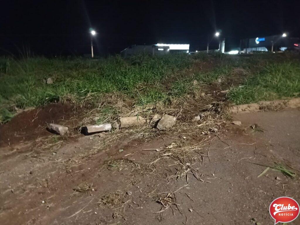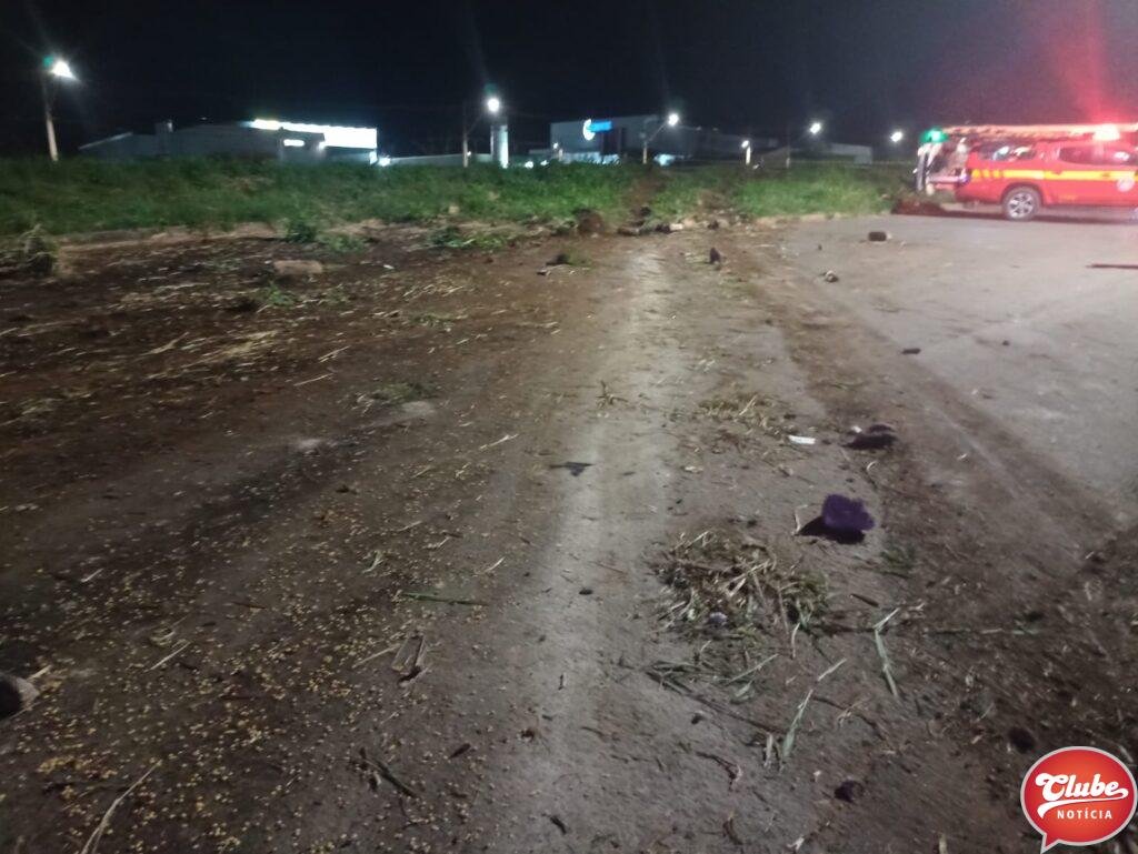 Após o impacto, a carreta, com placas de Patos de Minas e carregada com soja, atravessou o canteiro, a marginal e só parou dentro de um lote vago. O carro parou tombado no canteiro.