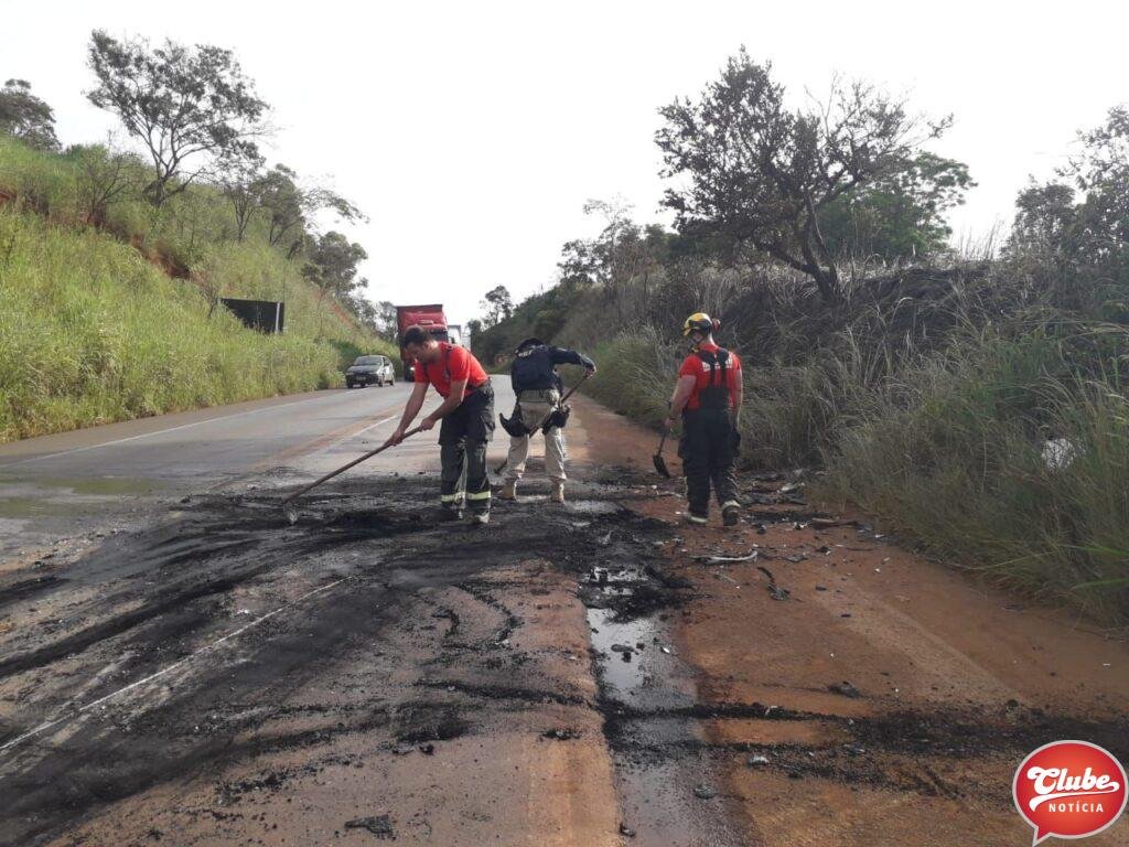 O Corpo de Bombeiros também auxiliou a Polícia Rodoviária Federal a arrastar o carro para fora da pista. Os bombeiros também removeram os detritos e realizaram a lavagem da pista.