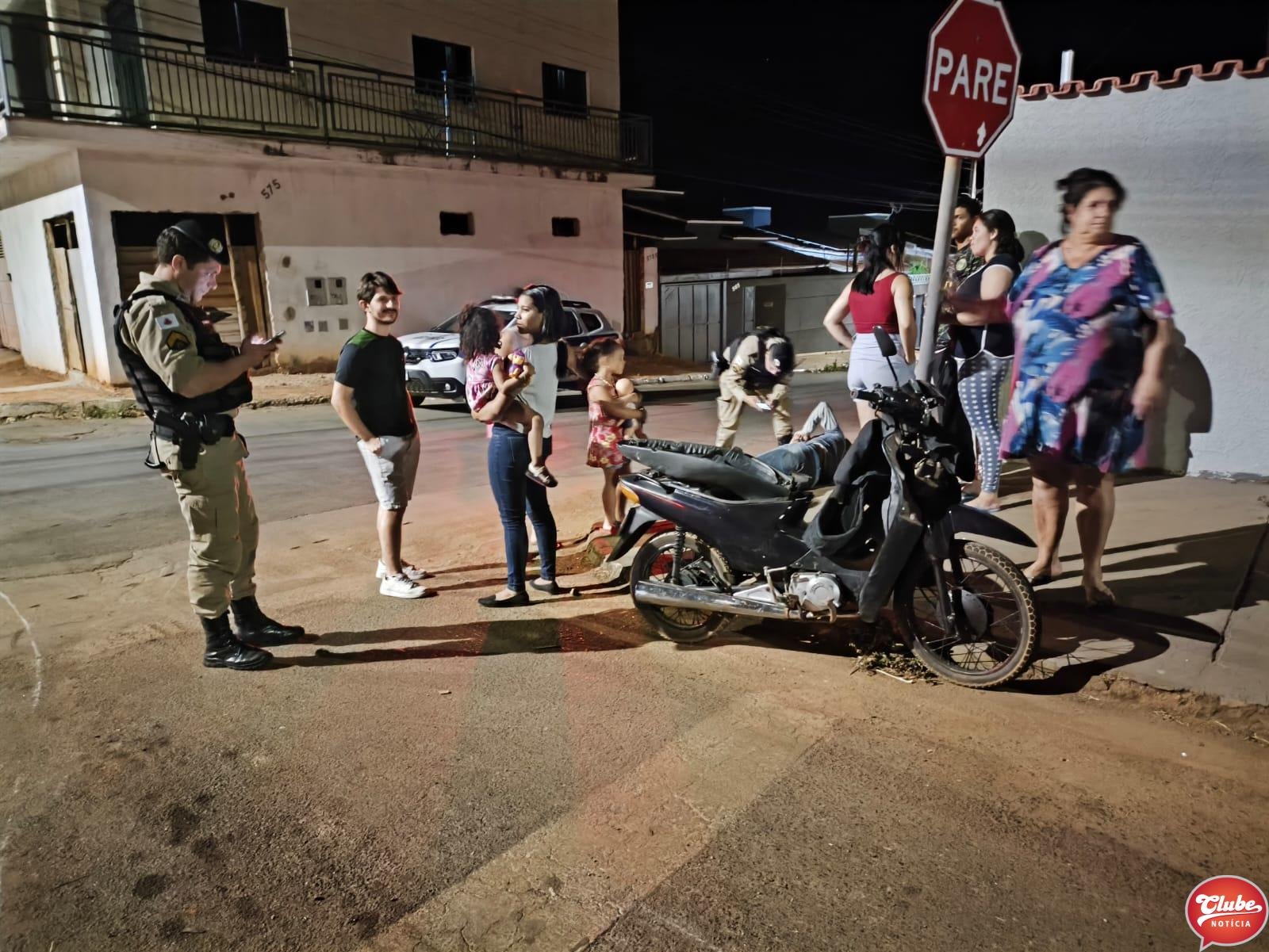 Na noite desta quarta-feira (27/08), um grave acidente foi registrado na Rua Zeca Mota, em Patos de Minas. A colisão envolveu um veículo Renault prata e uma motocicleta Honda Biz.
