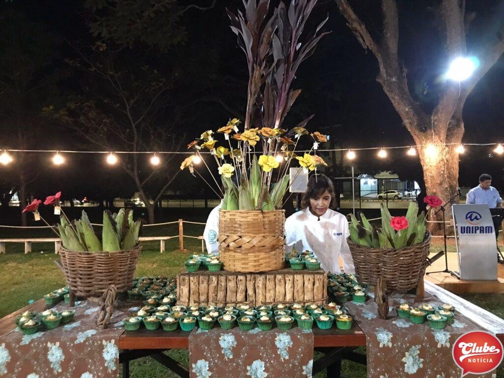 Brigadeiro de Milho, torta de milho com frango, pastel de creme com milho, suco de milho e bolo de milho com goiabada, alimentos esses light e diet apresentados na mostra de pratos típicos do curso de nutrição do UNIPAM.