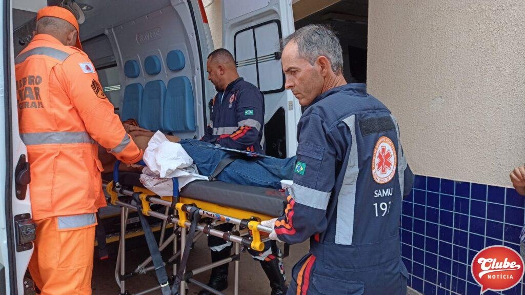 Uma equipe do SAMU socorreu a vítima, que apresentava um ferimento de faca próximo ao quadril. O homem foi levado até o Hospital Regional Antônio Dias.