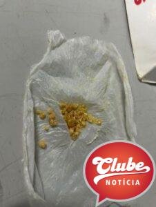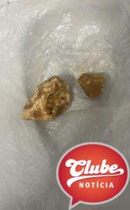 O suspeito foi abordado e durante a busca, os militares encontraram o involucro contendo uma pedra grande crack. No bolso da calça foi encontrado a quantia de R$ 793,00 e um outro involucro contendo pedras e farelo de crack. No armário da cozinha, foram encontradas uma bucha de maconha e um celular