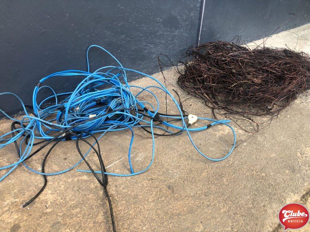 Com a chegada da Polícia Militar, um dos suspeitos tentou evadir e foi contido pelos militares. No local, também foram encontrados diversos fios.