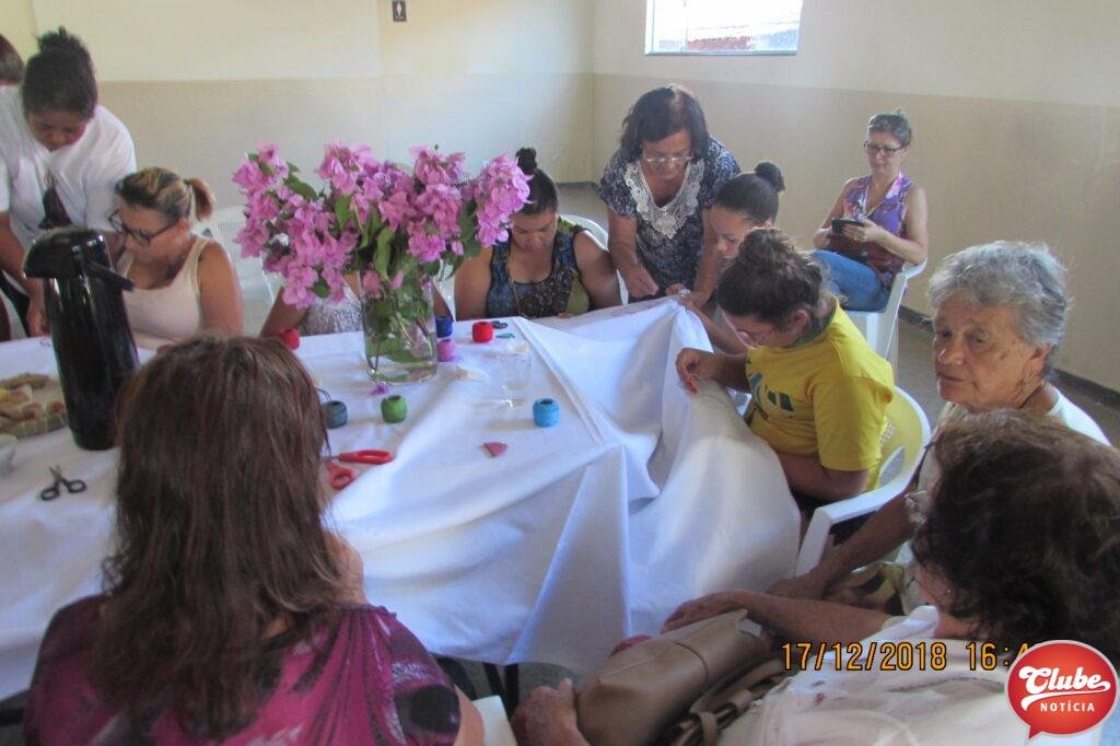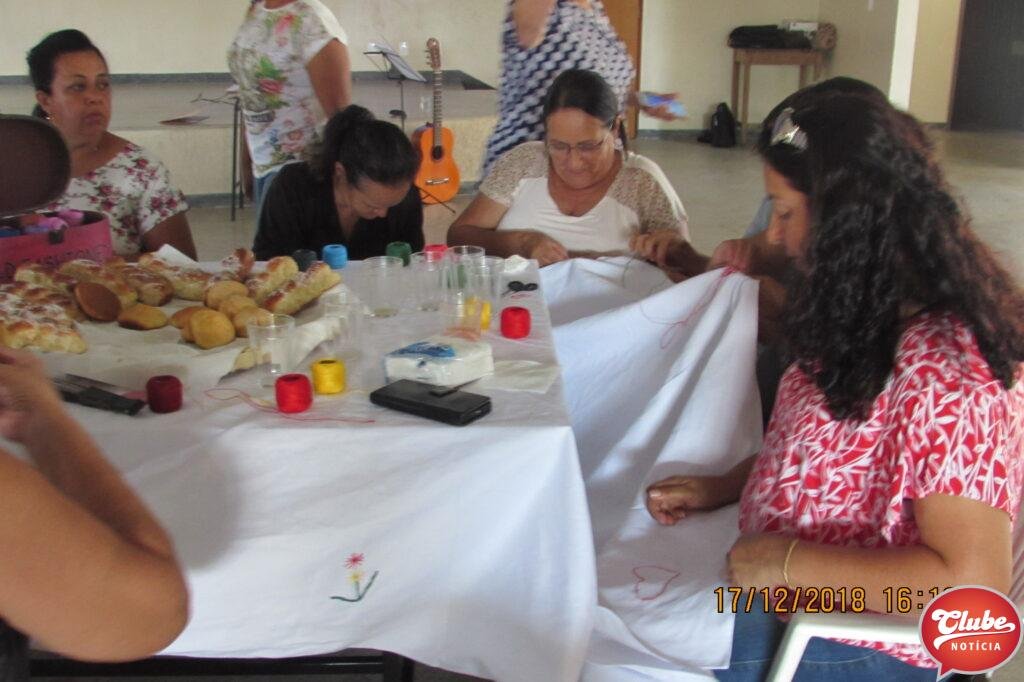 As primeiras etapas do Café com Bordado – Tecendo Arte, foram desenvolvidas no Distrito de Pindaíbas, em 2018 e 2019. É um projeto aberto a todos os moradores e tem o intuito de fortalecer neles o sentimento de pertencimento e autoestima, por meio de dinâmicas de partilha de alimento, troca de experiências e na confecção de bordados.