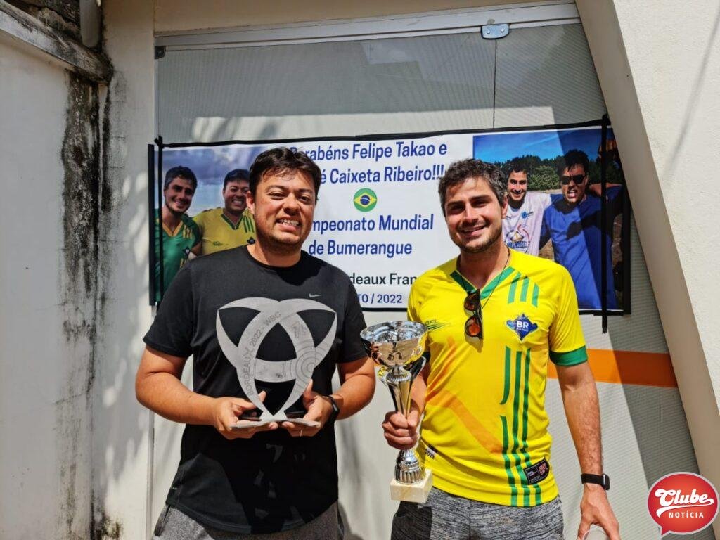 Neste último domingo (28/08), os atletas André Caixeta e Felipe Takao retornaram da França trazendo troféus e prestígio para o Brasil. Isso porque eles subiram no primeiro e no terceiro lugar no pódio do Campeonato Mundial de Bumerangue, que, este ano, aconteceu em Bourdeaux, na França.