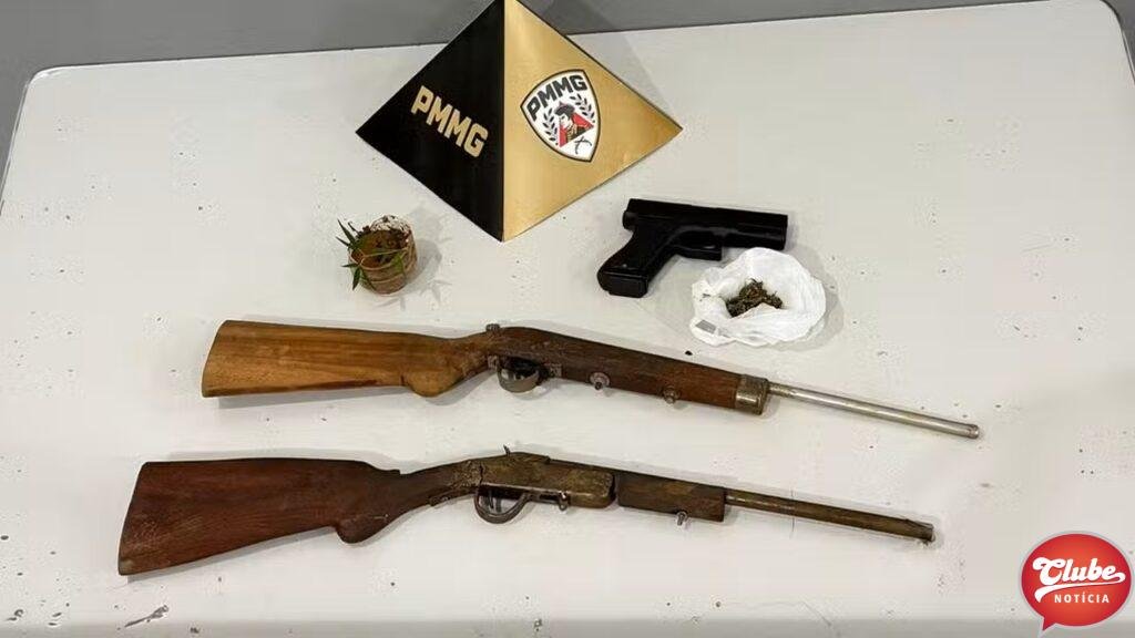 Jovem é preso com espingardas, simulacro e pé de maconha em Brasilândia