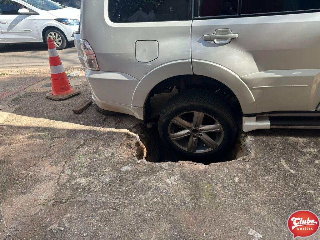 Veículo cai em buraco aberto pela Copasa na Avenida Fátima Porto, em Patos de Minas