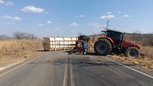Para a retirada do conjunto da rodovia, foi utilizada uma máquina agrícola, enquanto uma retroescavadeira realizou a limpeza do material espalhado