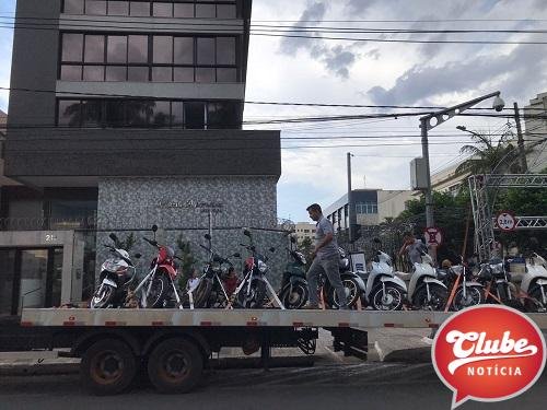 Motos estacionadas em lugar proibido são guinchadas na rua José de Santana, em Patos de Minas