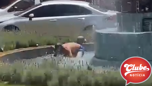 Internauta flagra homens nadando em fonte de praça no centro de Patos de Minas