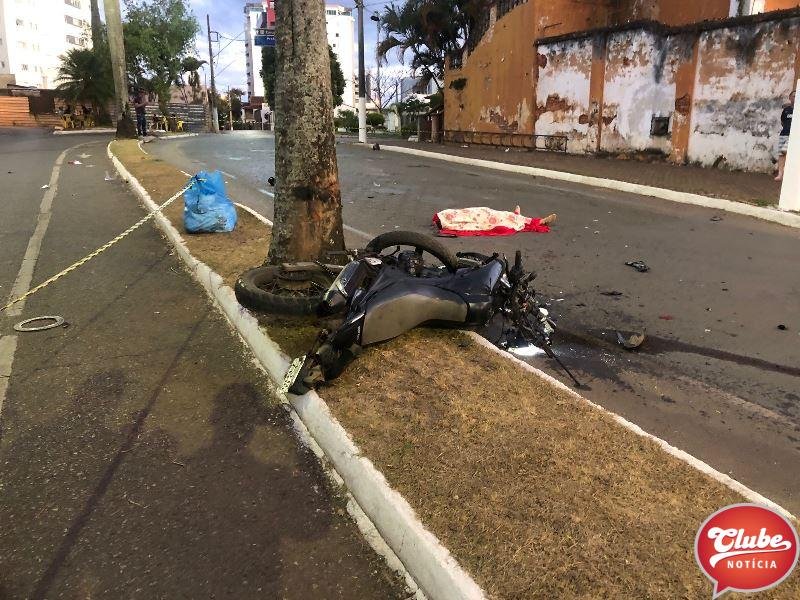 Motociclista morre e moto fica destruída depois de bater em árvore na Avenida Paracatu em Patos de Minas