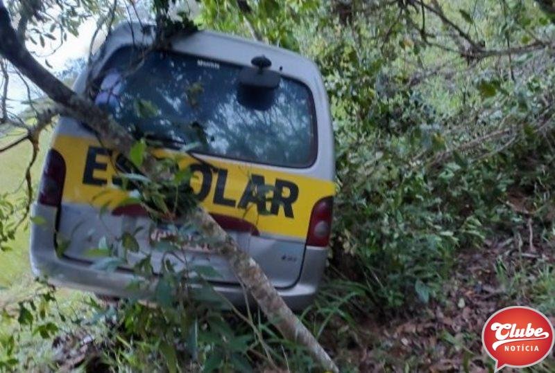 Van escolar desce ladeira e bate em árvore na região da Paçoca, em Presidente Olegário