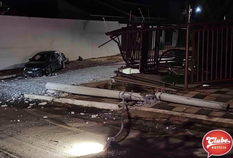 Motorista perde controle da direção, arranca poste de iluminação e grade de residência no Sobradinho