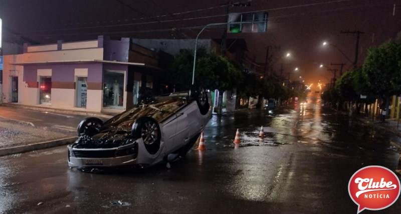 Motorista foge sem prestar socorro após bater de frente com pick-up e capotar veículo no centro de Carmo do Paranaíba