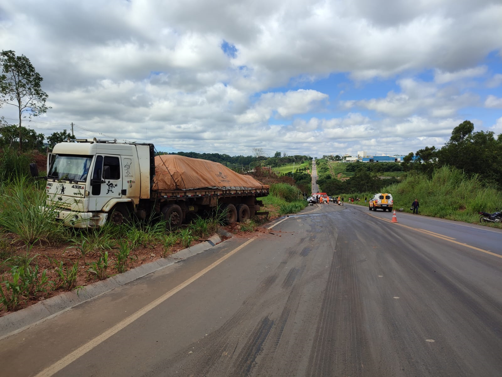 Uma grave colisão entre um carro de passeio e um caminhão foi registrada na manhã deste domingo (12), por volta das 10h30, na rodovia MGC-354, nas proximidades da entrada do viveiro de mudas do IEF, em Patos de Minas.