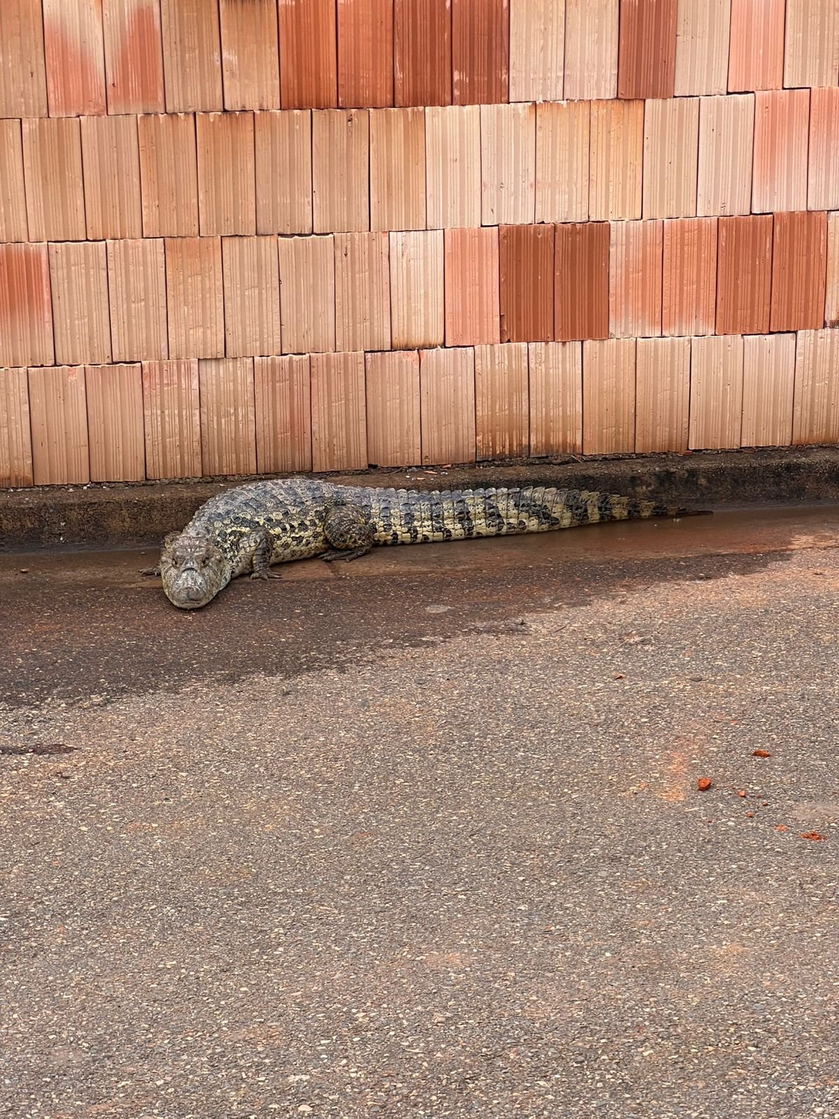 Segundo informações repassadas por moradores, o animal estava andando pela rua, em uma região próxima a lagoas naturais, o que pode ter contribuído para o deslocamento do réptil até a área urbana.