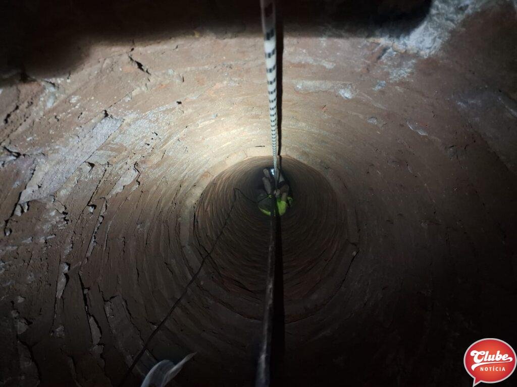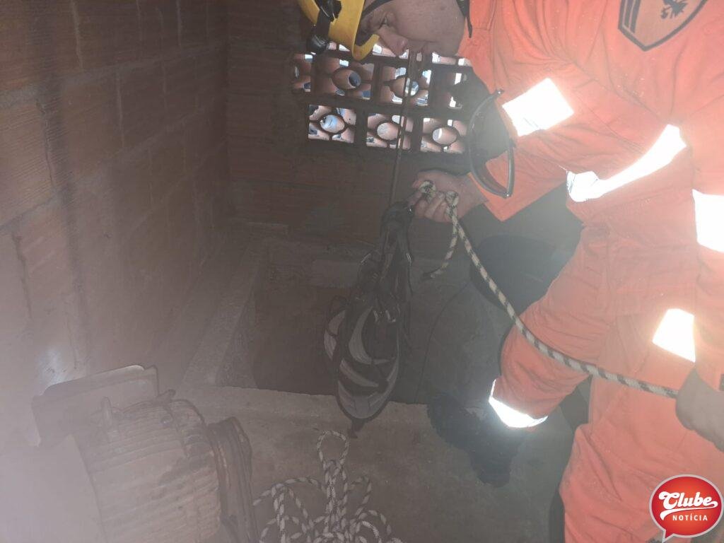 Neste domingo (28), por volta das 9h30 no bairro Nossa Senhora das Graças, em Patos de Minas, o Corpo de Bombeiros foram acionados para um salvamento de uma homem de 39 anos e cachorro preso em cisterna.