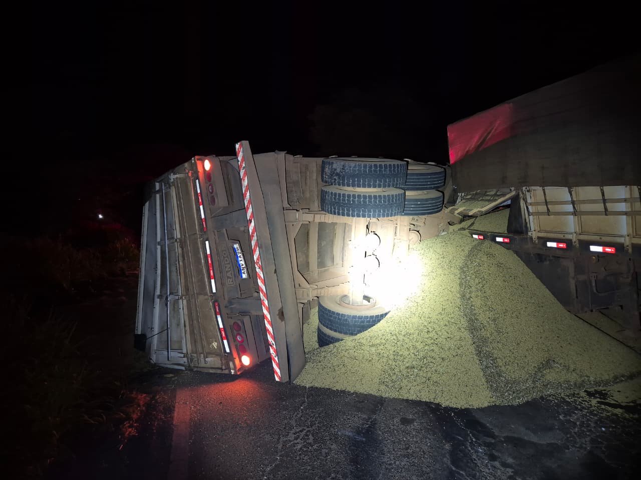 A seguradora foi acionada e ficará responsável pelo transbordo da carga e retirada da combinação veicular. Durante a fiscalização, foi constatado que o motorista estava devidamente habilitado e o veículo regular.