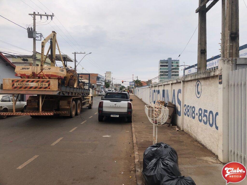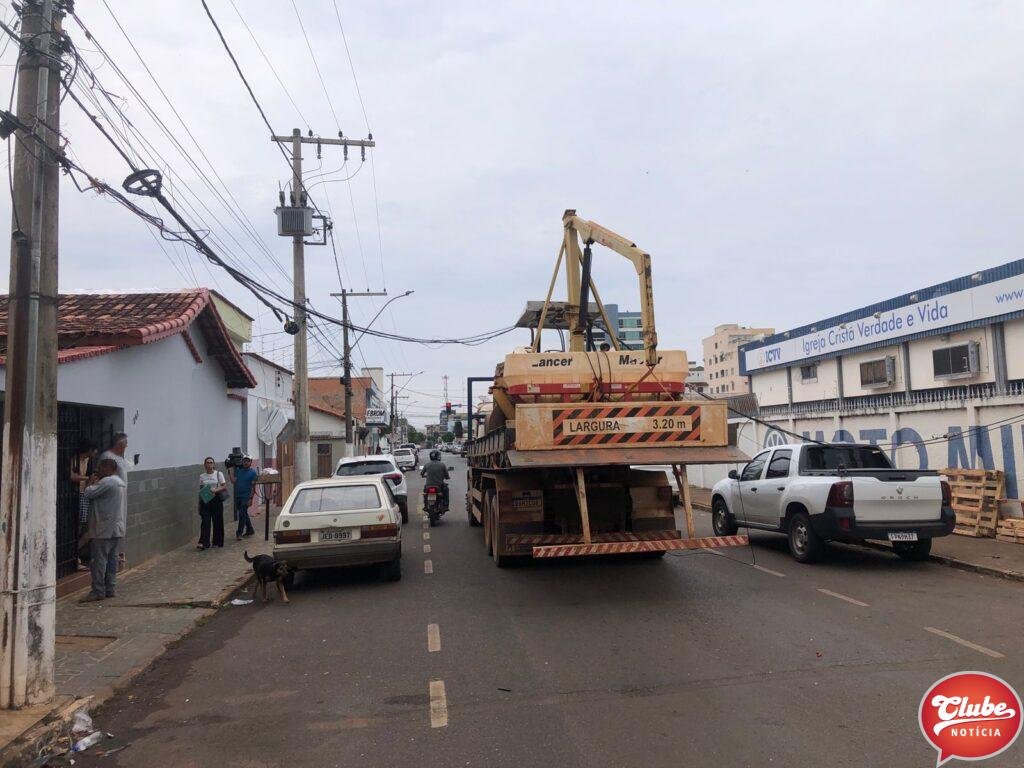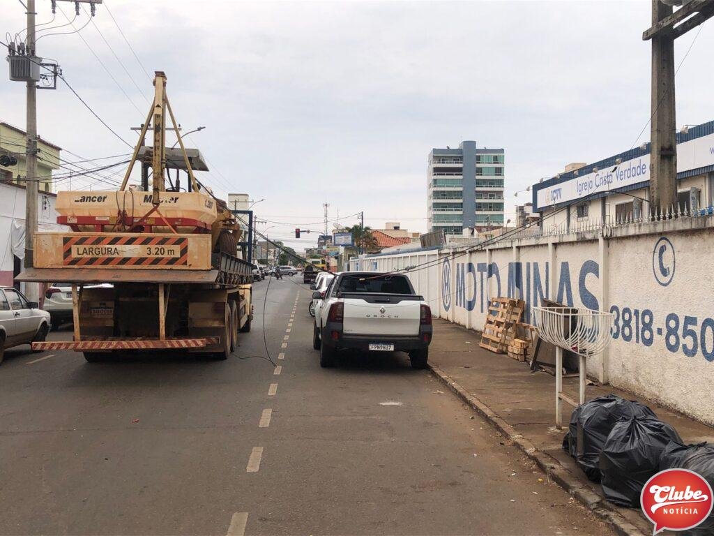 Na tarde desta sexta-feira (21/10), um caminhão prancha, que transportava um trator e tinha um guincho acoplado, causou diversos danos após o veículo atingir os fios da rede elétrica. O incidente ocorreu na rua Amazonas, no bairro Cônego Getúlio.