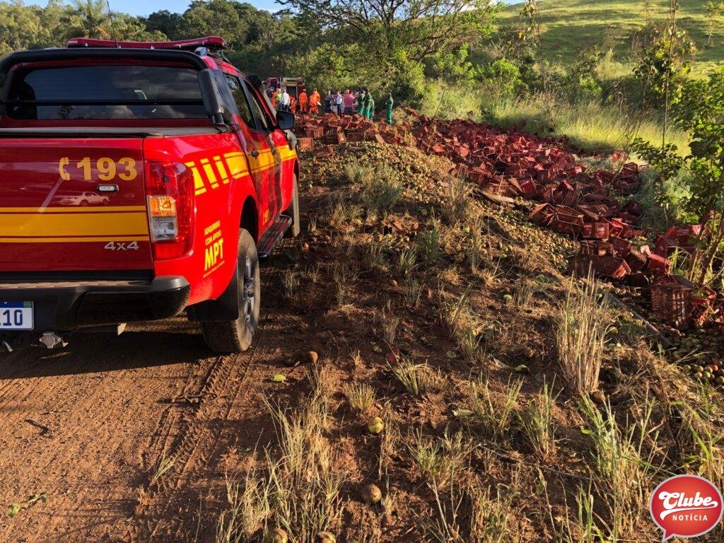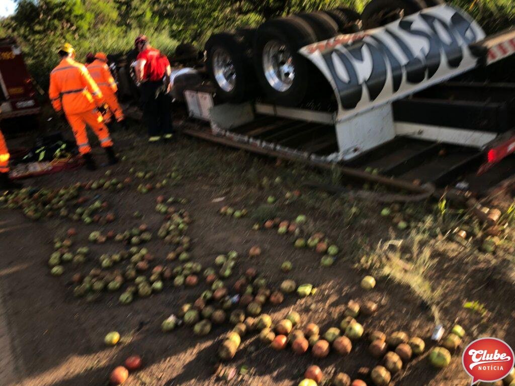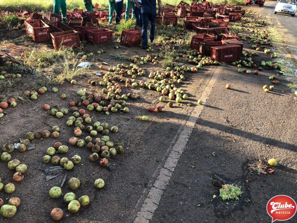O motorista do caminhão, carregado com tomates, teria perdido o controle ao trafegar pela “ponte em curva” sobre o Ribeirão da Mata. O veículo saiu da pista e tombou.