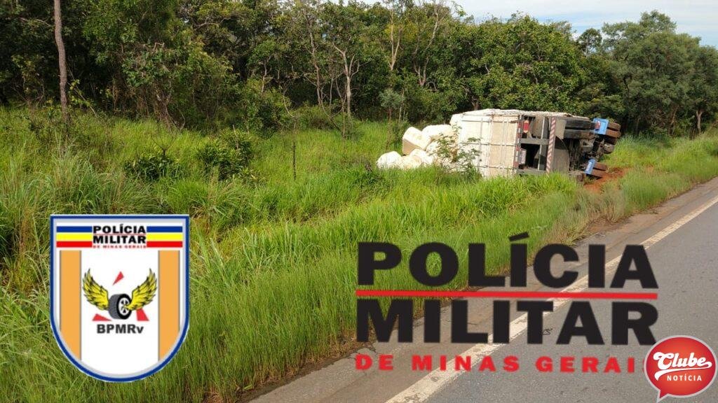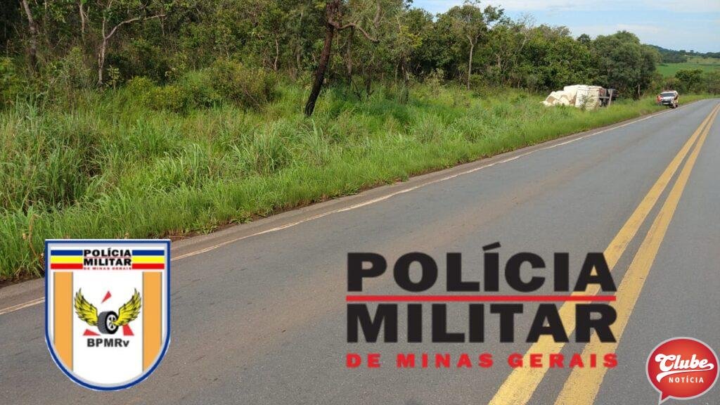 A POLÍCIA MILITAR DE MINAS GERAIS compareceu no KM 146 da rodovia MGC 354 onde havia ocorrido um sinistro de trânsito sem vitima. Segundo o relato do condutor B. N. S. de 35 anos que conduzia uma carreta Scania T113 e um semirreboque pela rodovia MGC 354 sentido Presidente Olegário/Patos de Minas, na altura do Km 146, trecho em declive e sinuoso, a carga que era transportada (cerca de 30 mil Kg em Fardos de algodão) tombou para o lado esquerdo, fazendo com que a carreta tombasse também para o lado esquerdo, ficando a mesma apoiada em um barranco fora da pista na faixa de domínio.