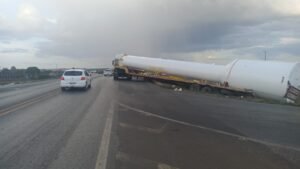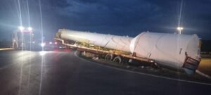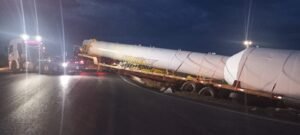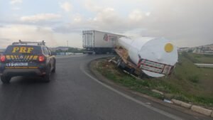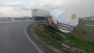 Segundo informações, o motorista de uma carreta, que seguia de São Paulo com destino ao Norte de Minas, transportando uma caixa d’água, não conseguiu realizar a manobra na alça de acesso para a BR-365.