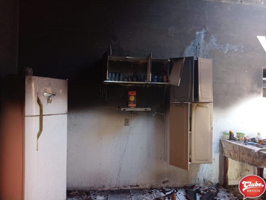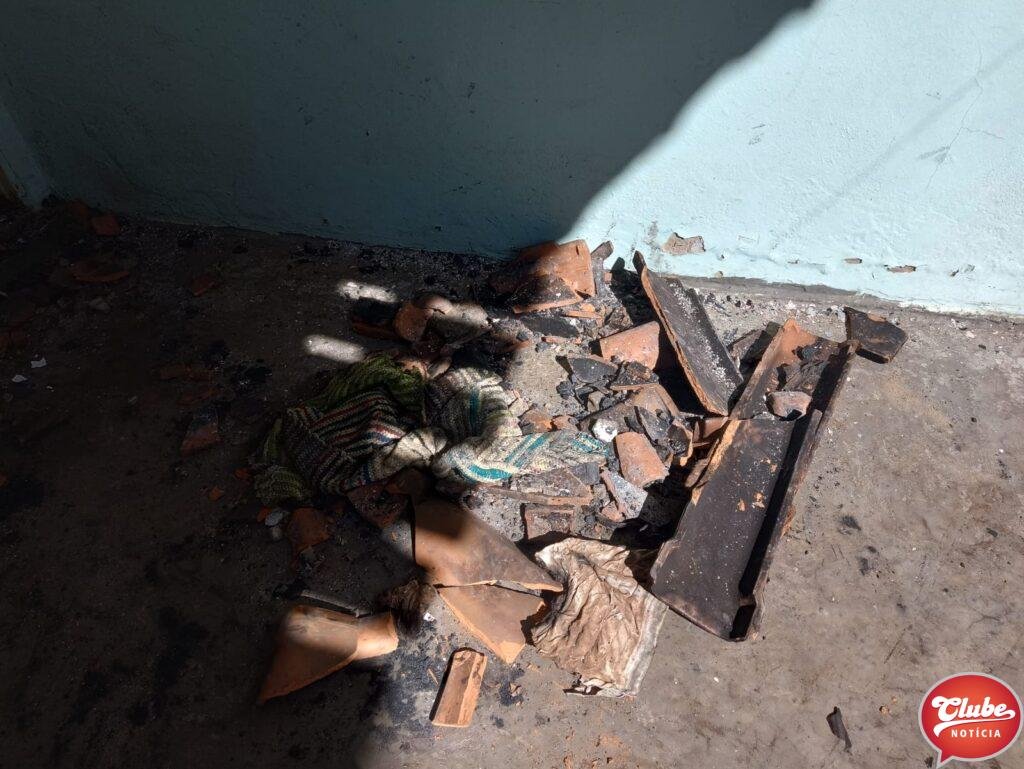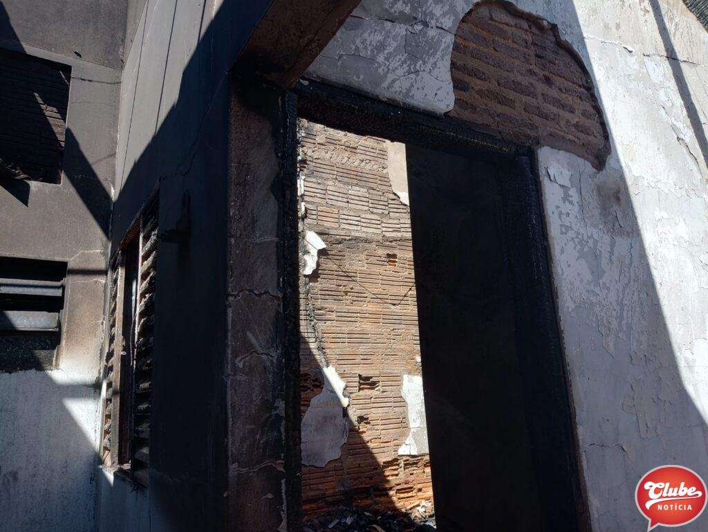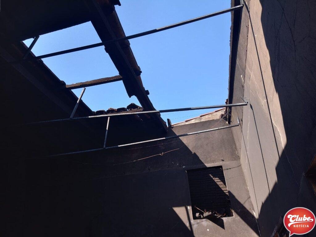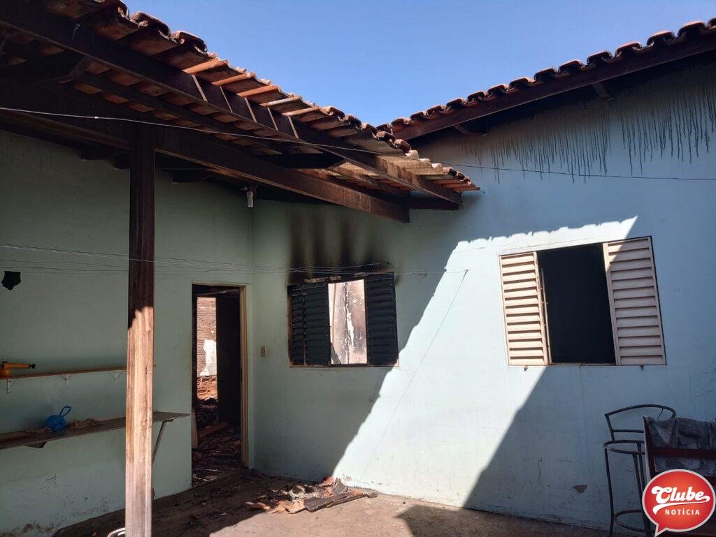 O imóvel ficou destruído. Além da estrutura da casa, o incêndio queimou os móveis, eletrodomésticos e pertences dos moradores. Até o telhado da residência desabou.