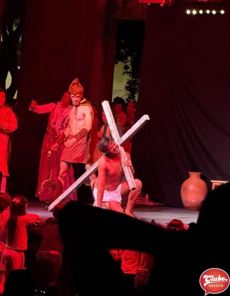 Na Igreja dos Capuchinhos, uma multidão de fiéis acompanhou a encenação da Paixão de Cristo, realizada por atores e atrizes do grupo de teatro “Trupe Retalhos e Remendos”.