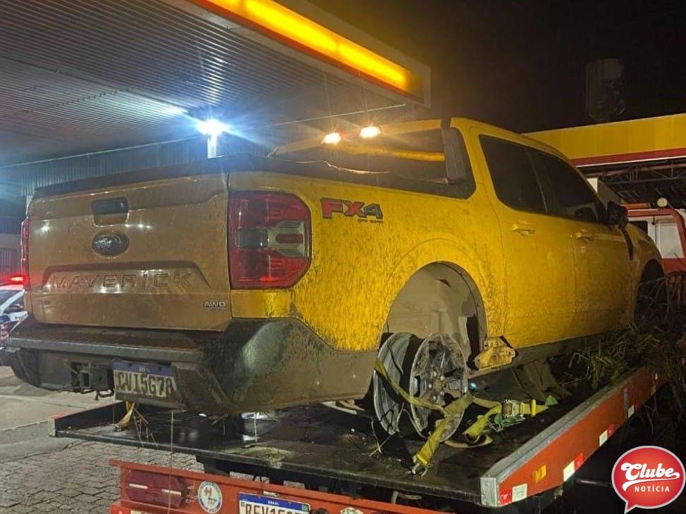 Motorista é preso trafegando em alta velocidade pela rodovia e sem os pneus traseiros de caminhonete