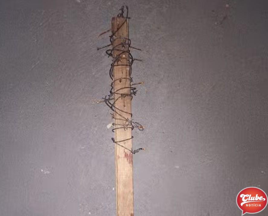 O pedaço de madeira usado na briga foi apreendido.