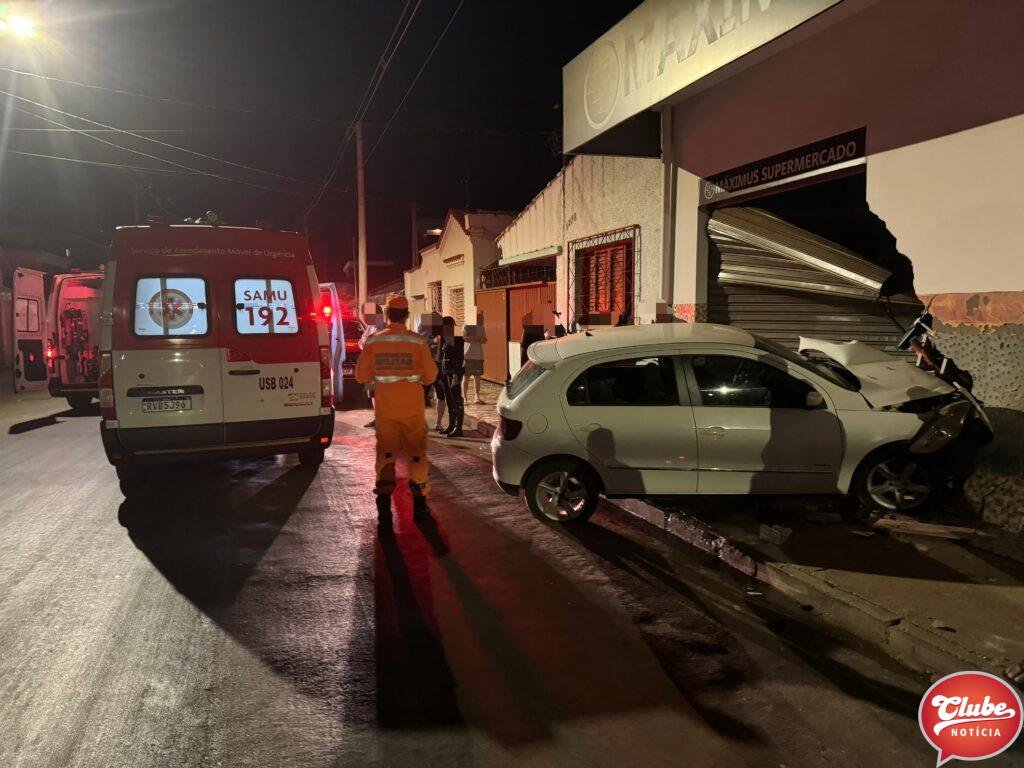 Motorista perde o controle e bate o carro na porta de um Supermercado, em Patos de Minas