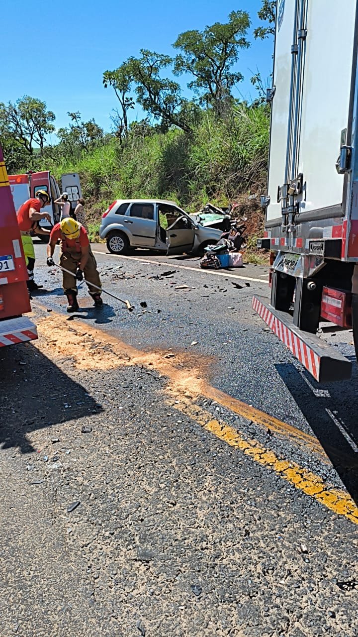 O motorista do caminhão estava consciente e calmo. Já duas vítimas que estavam no carro, um jovem de 21 anos e uma mulher de 20, receberam os primeiros cuidados ainda na rodovia. Ambos apresentavam dificuldade para respirar e dores intensas no abdômen e na região da bacia. Eles foram imobilizados com colar cervical e colocados em pranchas rígidas para evitar agravamento das lesões. Os bombeiros também realizaram curativos e ajudaram na estabilização das fraturas.