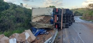 Já o condutor do caminhão trator DAF/XF FTT 530 SSC, de 32 anos, informou que seguia sentido Rio Paranaíba e, ao descer a rodovia, encontrou um caminhão parado no sentido crescente e uma fila de veículos à sua frente. Para evitar uma colisão traseira, ele também desviou pela contramão, colidindo com a Saveiro que realizava a ultrapassagem. Após o impacto, o caminhão acabou tombando sobre a pista no sentido crescente da via.