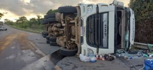 Uma colisão lateral envolvendo um automóvel e um caminhão foi registrada na rodovia MG-230, na altura do km 40, no município de Rio Paranaíba. Apesar do impacto e do tombamento de um dos veículos, não houve vítimas.