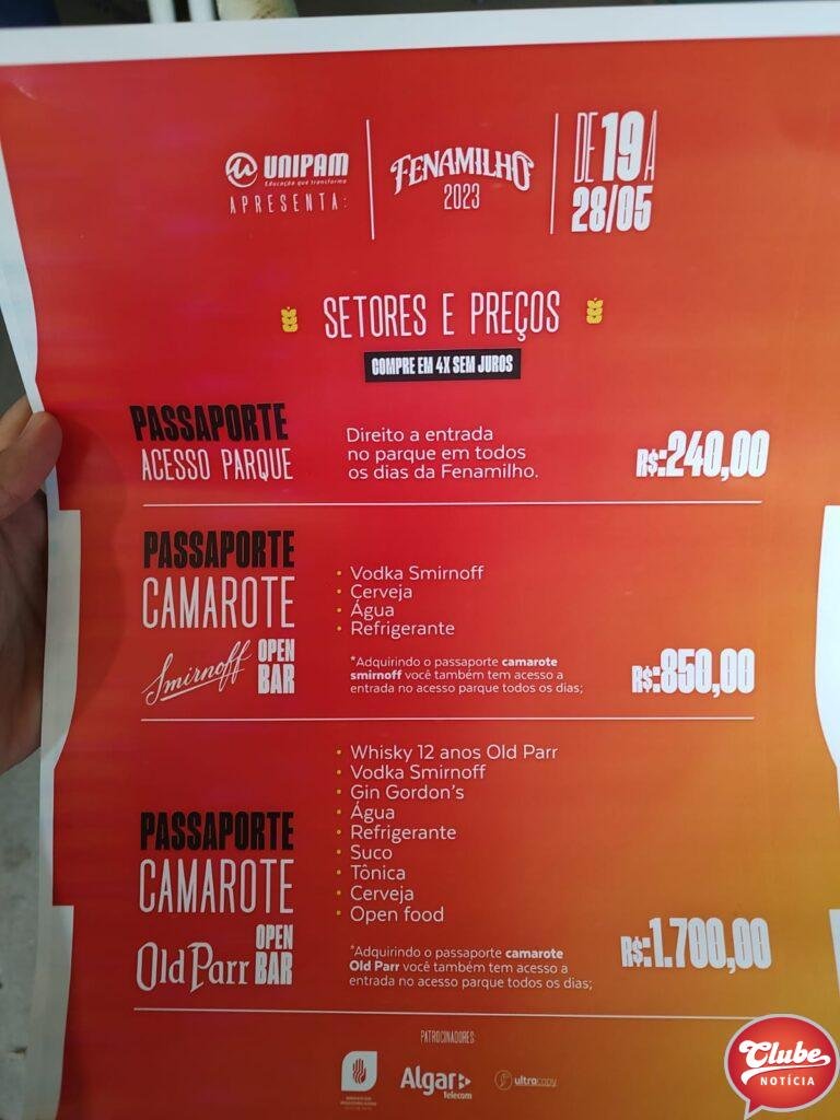 A partir desta terça-feira (07/03), interessados em adquirir passaportes da Festa Nacional do Milho (Fenamilho) podem consultar os preços dos ingressos e acessos aos quais tem direito com cada um. Com início das vendas às 12h, a Fenamilho já tem algumas atrações confirmadas: Jorge e Mateus; Cabaré (Bruno e Marrone e Leonardo); e Chitãozinho e Xororó.