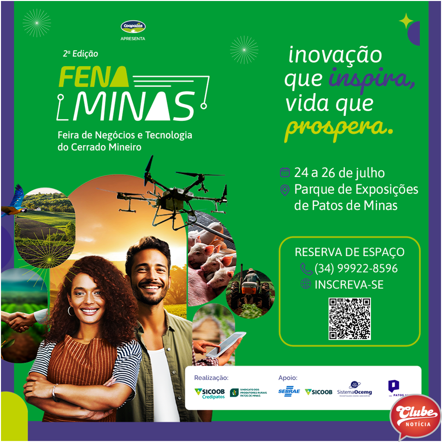 Fenaminas: de 24 a 26 de julho, no parque de exposições de Patos de Minas. Conexões e grandes negócios acontecem aqui!