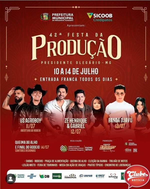 A equipe do locutor de rodeios Edidany Barbosa foi responsável pela contratação dos artistas que estarão se apresentando no evento que é referência na região pela tradição. A festa é realizada pelo Sindicato dos Produtores Rurais de Presidente Olegário.