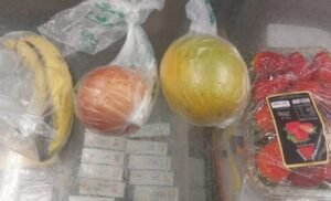 Ao iniciar buscas no interior do automóvel, a equipe policial percebeu um odor característico de maconha, sendo localizado dentro da porta traseira uma barra de maconha prensada com o peso aproximado de 01 kg e mais 01 bucha da mesma substância entorpecente.