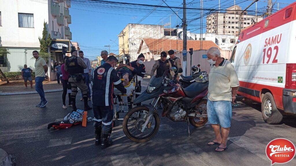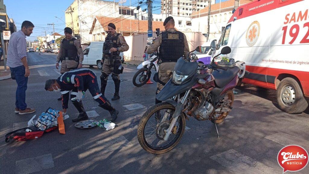 Com o impacto, o motociclista caiu no chão. Ele sofreu uma fratura exposta na perna esquerda. Ele foi socorrido pelo SAMU e levado para o Hospital Regional Antônio Dias (HRAD).