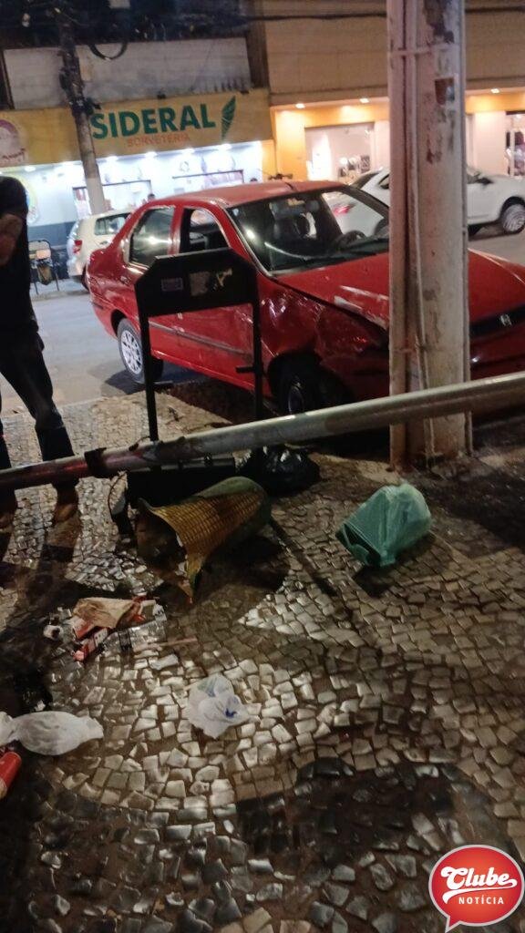 A ambulância colidiu na lateral do Siena. Com o impacto, o carro atingiu o semáforo de pedestres, uma lixeira e um poste.