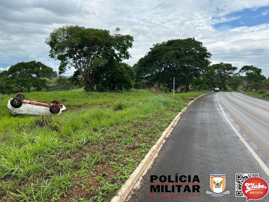 A Polícia Militar foi acionada por volta das 15h na BR-352, KM-182 em Patos de Minas onde foi apurado que a condutora de 38 anos conduzia o veículo Chevrolet/Onix, de cor branca, sentido Lagoa Formosa para Patos de Minas, quando veio a perder o controle direcional do veículo, saindo da pista de rolamento e capotando logo em seguida, vindo o veículo parar na faixa de domínio da rodovia com o conjunto pneumático voltado pra cima.