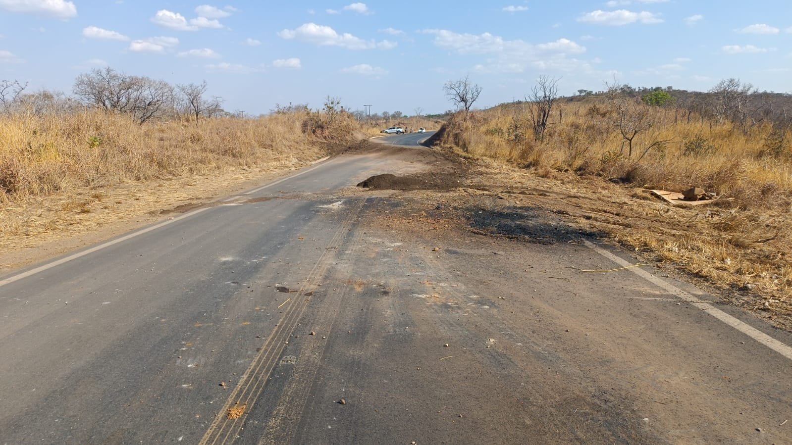 Para a retirada do conjunto da rodovia, foi utilizada uma máquina agrícola, enquanto uma retroescavadeira realizou a limpeza do material espalhado.
