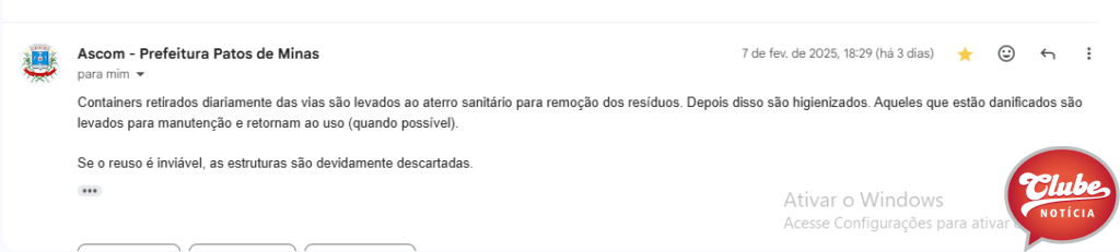 A reportagem do Clube Notícias entrou em contato com a Prefeitura Municipal através de e-mail, que em resposta nos concedeu a seguinte nota: